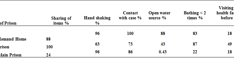 Hand to hand contact is very frequent in this setting and could have facilitated this outbreak. The highest attack rates could be explained by poor unhygienic practices among the young adults. This has been documented else- where as well, in Pakistan, the mean age for the patients was 24 (Khan A 2008) and Wu et al. had highest proportion affected among students at 23.9% , factory workers at 22.9% and children in kindergarten at 16.9% (Wu, Qi et al. 2014). In this outbreak cases were confined in the three prisons and there were no community cases.