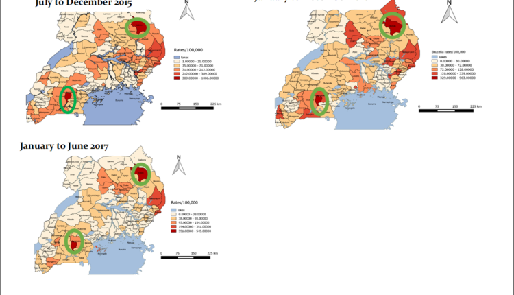 Analysis of Surveillance data to determine distribution of Human Brucellosis in Uganda, July 2015 to June 2017