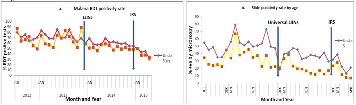 Malaria incidence, test positivity rates and the contribution of the disease to OPD attendance have declined significantly since introduction of vector control interventions. There is need to sustain the achieved success to avoid malaria resurgence and epidemics.