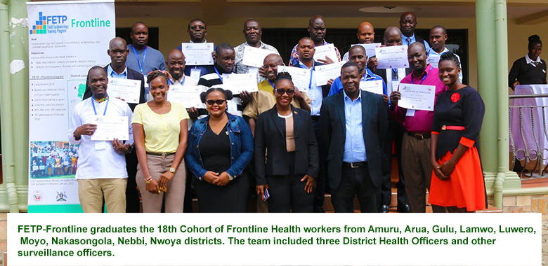 FETP Frontline Graduation of the 18th Cohort of FETP-Frontliners on 3rd/3/ 2023 Author: Daniel Kadobera By admin Last updated Mar 3, 2023 809 Share Welcome to the 18th graduation of Cohort 18 Frontliners. Related 809 Share FacebookTwitterWhatsAppLinkedinEmail