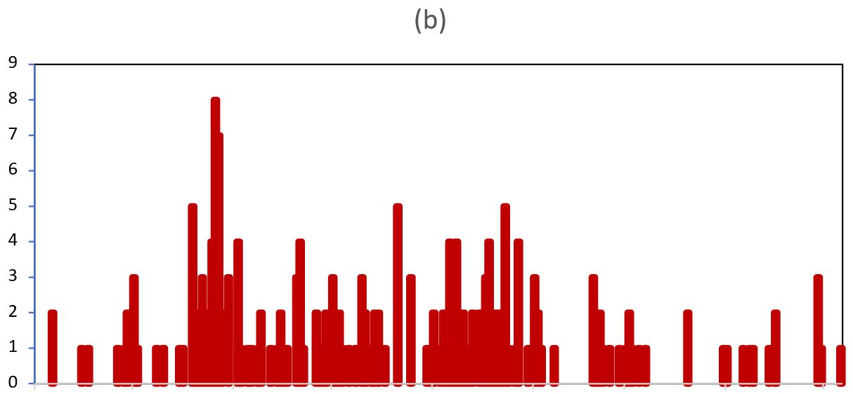 The epidemic curves indicated person-to-person transmission (Figure. 2a). From the symptom onset date of the index case-person (12th August 2022) to that of the last case-person (5th May 2023), the outbreak lasted about 8 months. On 20th August, 2 refugees, reportedly moved from Lamwo district which had been experiencing an outbreak of Measles around that time to visit a relative and a friend in Kiryandongo refugee camp. The district was notified about this travel from Lamwo refugee camp although they couldn’t not trace these refugees. Around the same time, a mother with a 2year old male baby also travelled back from Palabek in South Sudan which also had been experiencing a measles outbreak (where she had gone to check on her husband). A week later, the older siblings and the neighbors also developed similar measles like symptoms. These children were taken to Nyakadoti health centre on September 11th, and samples were taken off. The district was notified about the positive results in November and on 22nd December, the number of cases had increased to include 11 confirmed and hence declared an outbreak. The health facilities continued to receive patients with measles like rash from different parishes and sub-counties.