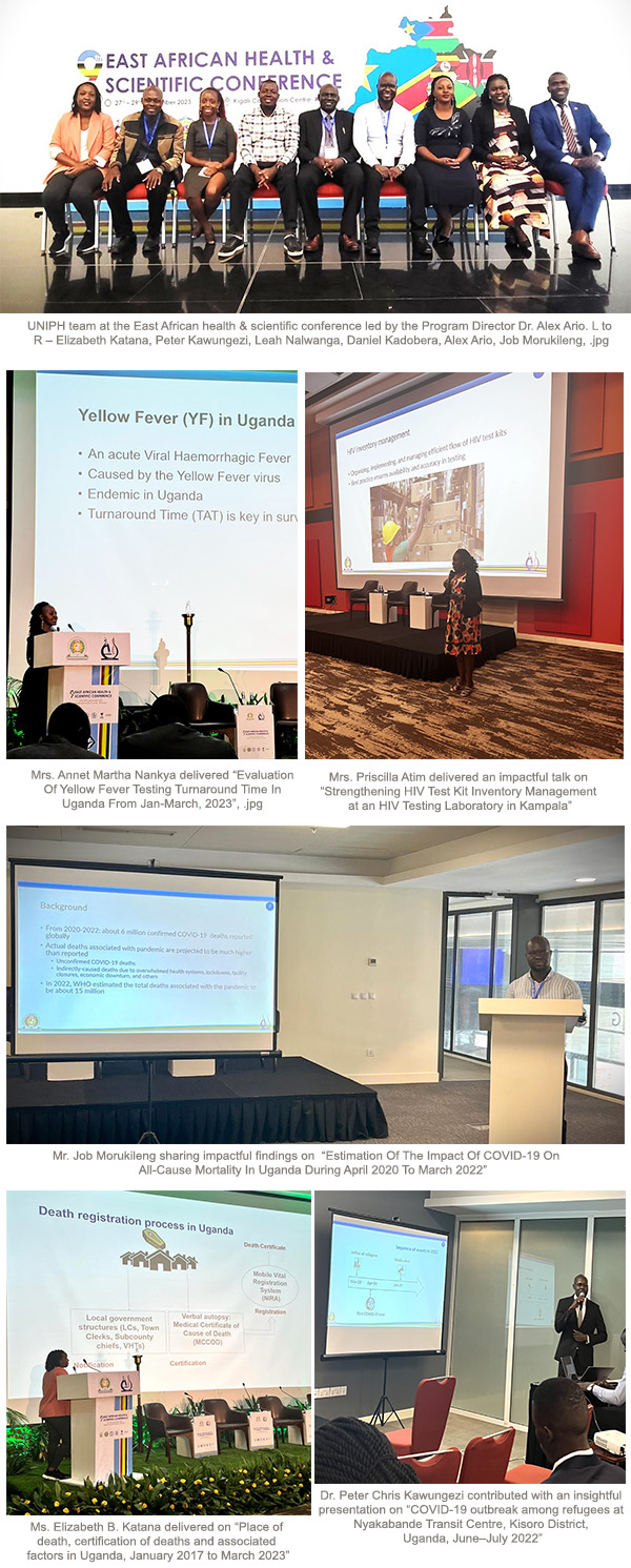 Eight fellows from Uganda Public Health Fellowship Program (PHFP)-Field Epidemiology Track (FET) and Laboratory Leadership Program (LLP) presented their outstanding work during the conference offering valuable insights into the challenges faced by the public health sector in line with the conference theme “Challenges and strategies to preparedness and response to communicable and non-communicable diseases: Lessons Learnt from COVID-19 Pandemic“. The presentations delivered by our distinguished fellows covered a wide range of topics including: HIV, Resilience of Health workers during the Ebola outbreak; Mortality Surveillance; Impact of COVID-19 on all-cause mortality and Yellow Fever.