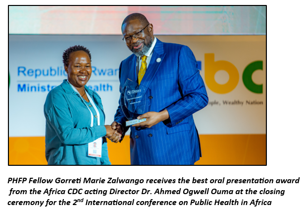 The Uganda Public Health Fellowship Program (PHFP) participated in this knowledge sharing event were a number of abstracts for both oral and poster presentations were made. A fellow at the PHFP won the best oral presentation award for the abstract titled, “Risk factors for death among children with severe malaria in Namutumba District, Uganda, September 2021-February 2022”.