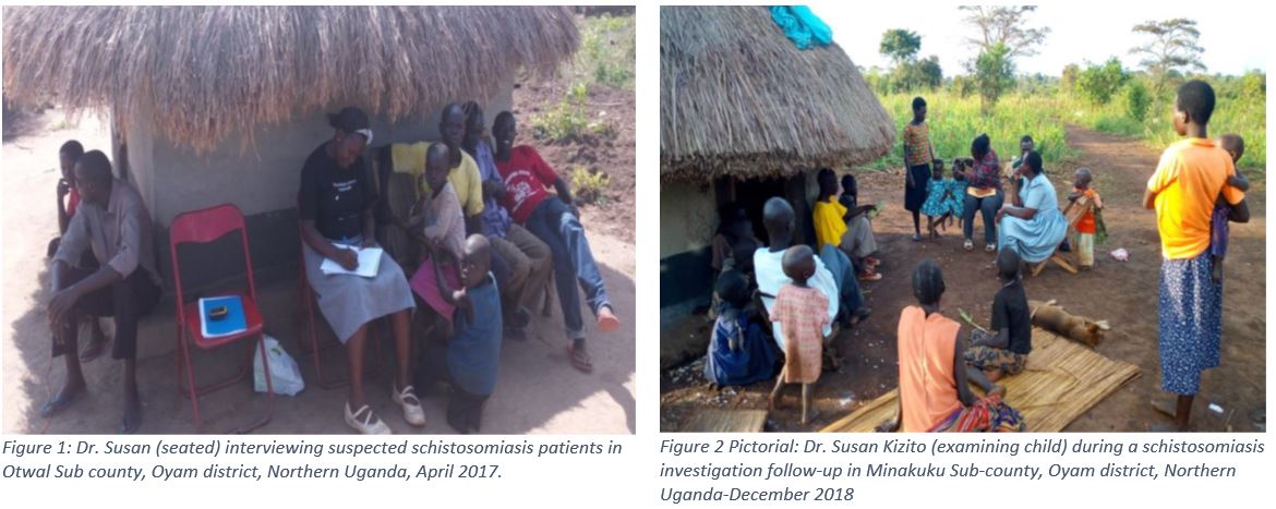 | ABOUT THE FELLOWDr. Susan Kizito joined the Uganda Public Health Fellowship Program in January 2017 and was hosted at the Neglected Tropical Diseases (NTD) program, Vector Control Division (VCD), Ministry of Health for the two year apprenticeship. While at VCD, Susan was part of the National team that strives to control, eliminate and eradicate neglected tropical diseases. In the two year apprenticeship, Susan has horned her skills in epidemiology including: investigation and mitigation of disease outbreak at the source, response to public health emergencies, establishment and evaluation of surveillance activities, design and implementation of operational research, program monitoring and evaluation, Scientific writing and communication among others.   Achievements at the Host Site | |