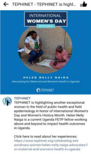 ABOUT THE FELLOWNelly Helen Naiga is a field epidemiologist with a Masters of Public Health, and a background degree in Nursing science. Before the fellowship, she worked with the Uganda Ministry of Health as an Epidemiologist during the COVID-19 response. During her time as a fellow, she was attached to the Nutrition division, under the community health department, Ministry of health. Time at the host site has helped to improve Nelly’s understanding of nutrition health issues in the country through her participation in policy formulation; Setting standards & quality assurance of different food products (Nutrient profile model), leading teams in organizing different campaigns like improving breastfeeding among working mothers, Vit A supplementation and de-wormers among children among others. During her two years tenure, Nelly has gained experience in advanced outbreak detection and investigation skills, improved her scientific writing skills, grant and proposal writing skills, grant management, and oral presentation skills. She has refined her skills in data management and analysis using statistical packages like STATA, Epi info and QGIS. She has improved her leadership skills and gained immeasurable technical capacity through the various learning sessions, meetings, trainings and workshops attended. She has led and participated in several outbreaks in different districts like Blackwater Fever Outbreak, recent Ebola outbreak, Yellow fever, Anthrax and Rift valley Fever. She led and participated in other investigations of public health importance. Nelly has skills in scientific communication both written and oral presentation. She has edited and published reports in the National Institute of Public Health (UNIPH) bulletins. She has authored manuscripts as led author and co-authored on others. Achievements at the Host Site